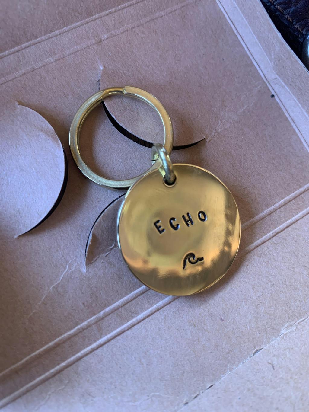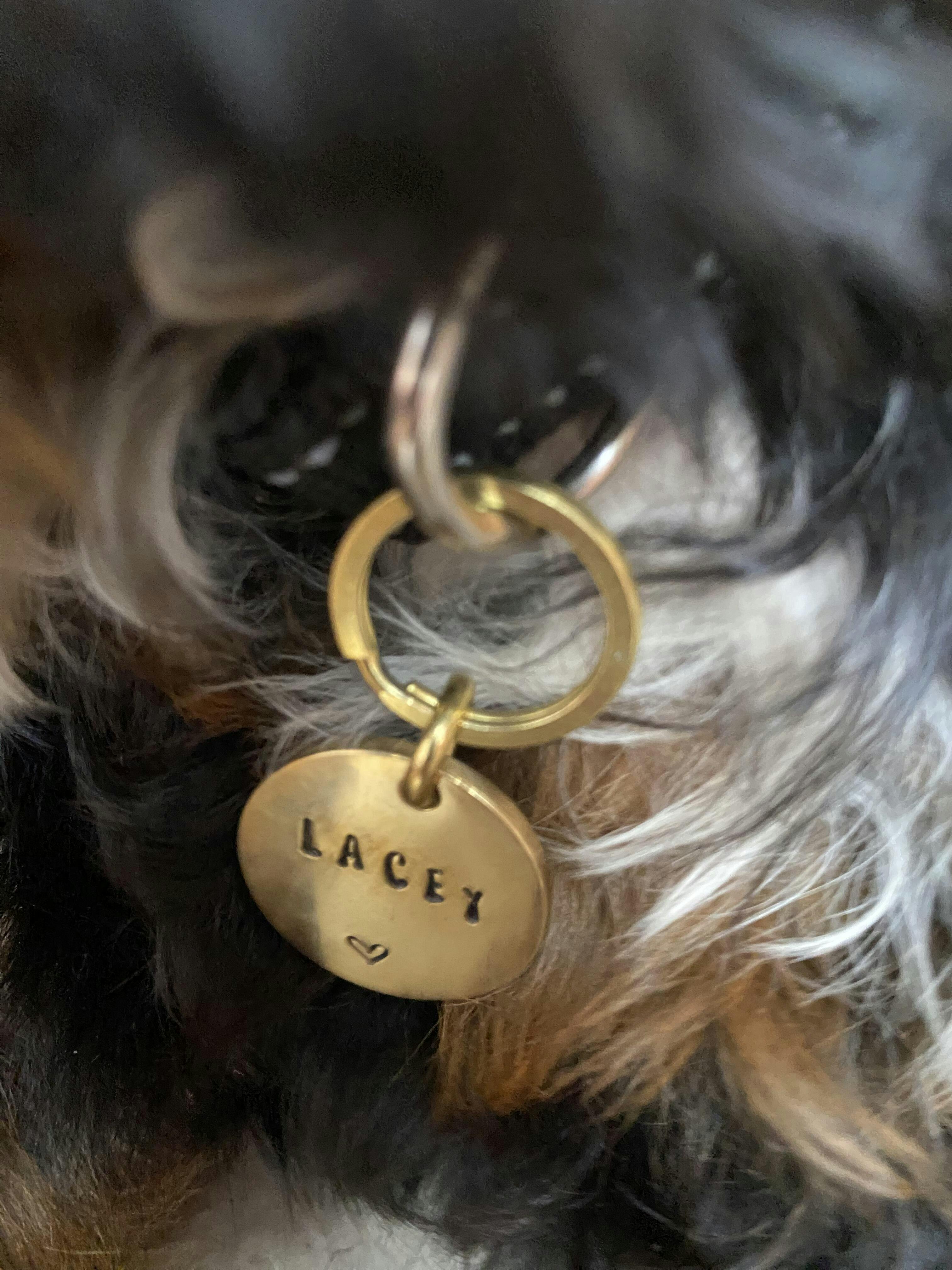 I think this tag is gorgeous overall. While I love the uniqueness, I wish I had know that the writing would be slanted. The image above has straight slightly larger lettering that I prefer. Nonetheless, it is a lovely pet tag!