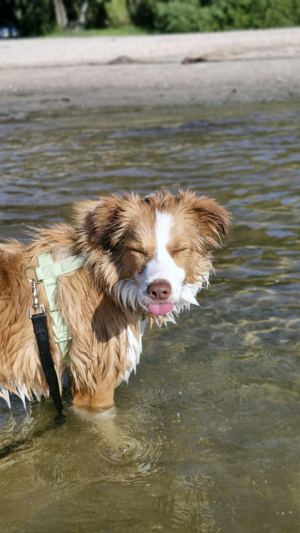 Our dog loves this harness! It is so easy to take our dog to the beach with this harness. Simply squirt off the sea water and it’s brand new